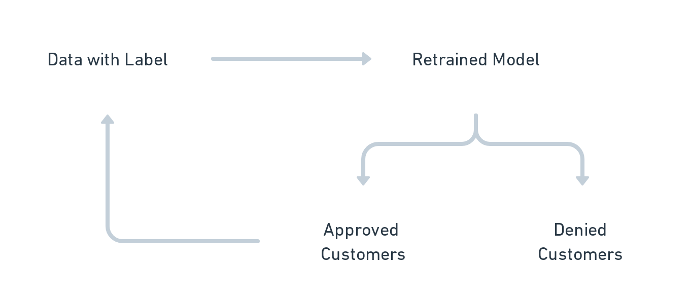 You used data from the company's customers and finally created a model with reasonable precision. By your calculations, it should be highly profitable (as estimated by the customer’s default reduction). Therefore, the “approval model” goes to production, and now every customer will either be approved or denied following the model prediction.